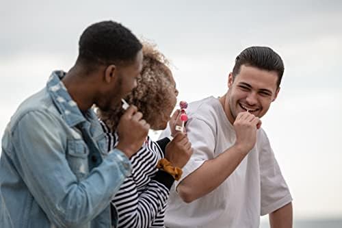 Assorted flavour lollipops: strawberry, cherry, cola, strawberry-cream, cocoa-vanilla and vanilla.