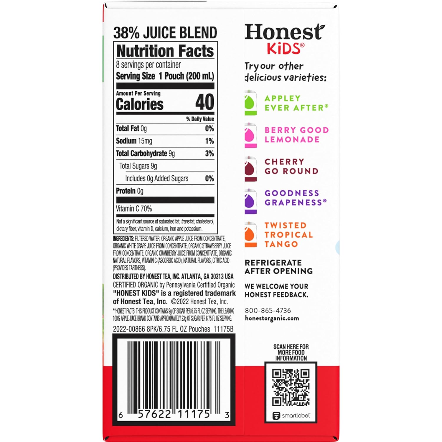 Gluten-free Product Dimensions : 3.25 x 10.88 x 5.8 inches; 3.38 Pounds Item model number : 118923 UPC : 657622111753 Manufacturer : Honest Kids ASIN : B00EVSYBMA Country of Origin : USA