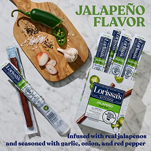 When you need a wholesome and satisfying snack for your family, you need Lorissa’s Kitchen Jalapeño Beef Sticks. Made with 100% grass-fed beef raised without added growth hormones or antibiotics, you can trust these savory sweet meat snacks are carefully sourced using only high-quality ingredients. These perfectly tender Jalapeño beef sticks are infused with real jalapeno peppers and seasoned with garlic, onion and red pepper then slow-smoked for just the right amount of savory heat the whole family will love. Made with no preservatives, added nitrates or nitrites* or MSG, they are the go-to gluten-free and keto-friendly snack for go time you can feel good about feeding your family. Packed with 6g of protein per serving, this good source of protein premium beef stick fuels and energizes you tackle your family’s busy schedule. Plus, the 1 oz individually wrapped sticks make it easy to toss in your (or your husband or kid’s ) backpack, purse, sport/activity bag, briefcase or lunchbox so you’re ready to nourish when it matters most. When you need a quick protein snack** that is craveable, flavorful and ethically sourced, grab Lorissa’s Kitchen Jalapeño beef sticks and go! The best things in life are made with love. That’s why Lorissa started Lorissa’s Kitchen: out of love for simple ingredients, delicious recipes and nourishing snacks. And just like you, her busy, on-the-go family needed wholesome, real snack solutions the kids would love, too. Our first batch was a hit. And, we haven’t slowed down since. †Except those naturally occurring in cultured celery powder and celery seed. *Good source of protein, 6g of protein per serving.