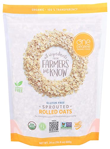 One degree organic foods rolled oats are made with 100% traceable ingredients. These delicious oats are gluten free non-gmo and made with whole grains. One degree organic foods steel cut oats are kosher and vegan friendly. At one degree organic foods we believe in the connection between healthy soils healthy plants and healthy people. Each bag of one degree organic foods rolled oats sprouted organic rolled oats contains 24 oz. Of the best ingredients. See nutrition facts panel for allergens.country of origin : united statesis gluten free : yesis gmo free : yesis kosher : yesis vegan : yesorganic : 95%+ organicsize : 24 ozpack of : 4selling unit : caseingredients : ingredient: organic gluten-free sprouted whole grain oatskeywords : free;gluten;gmo;grain;kosher;non;organic;rolled;whole