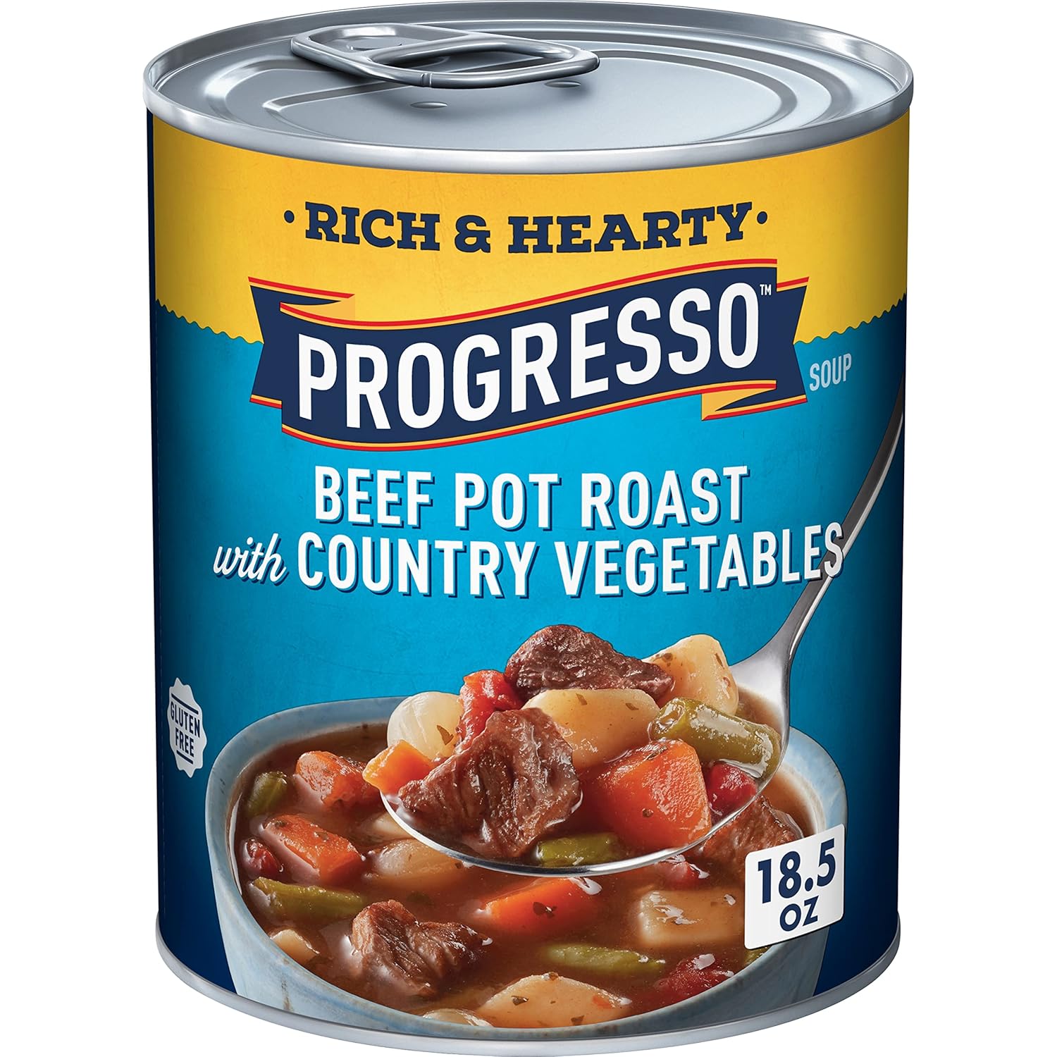 • Progresso Beef Pot Roast with Country Vegetables Soup, Rich and Hearty Canned Soup, Gluten Free, 18.5 oz (Pack of 12)