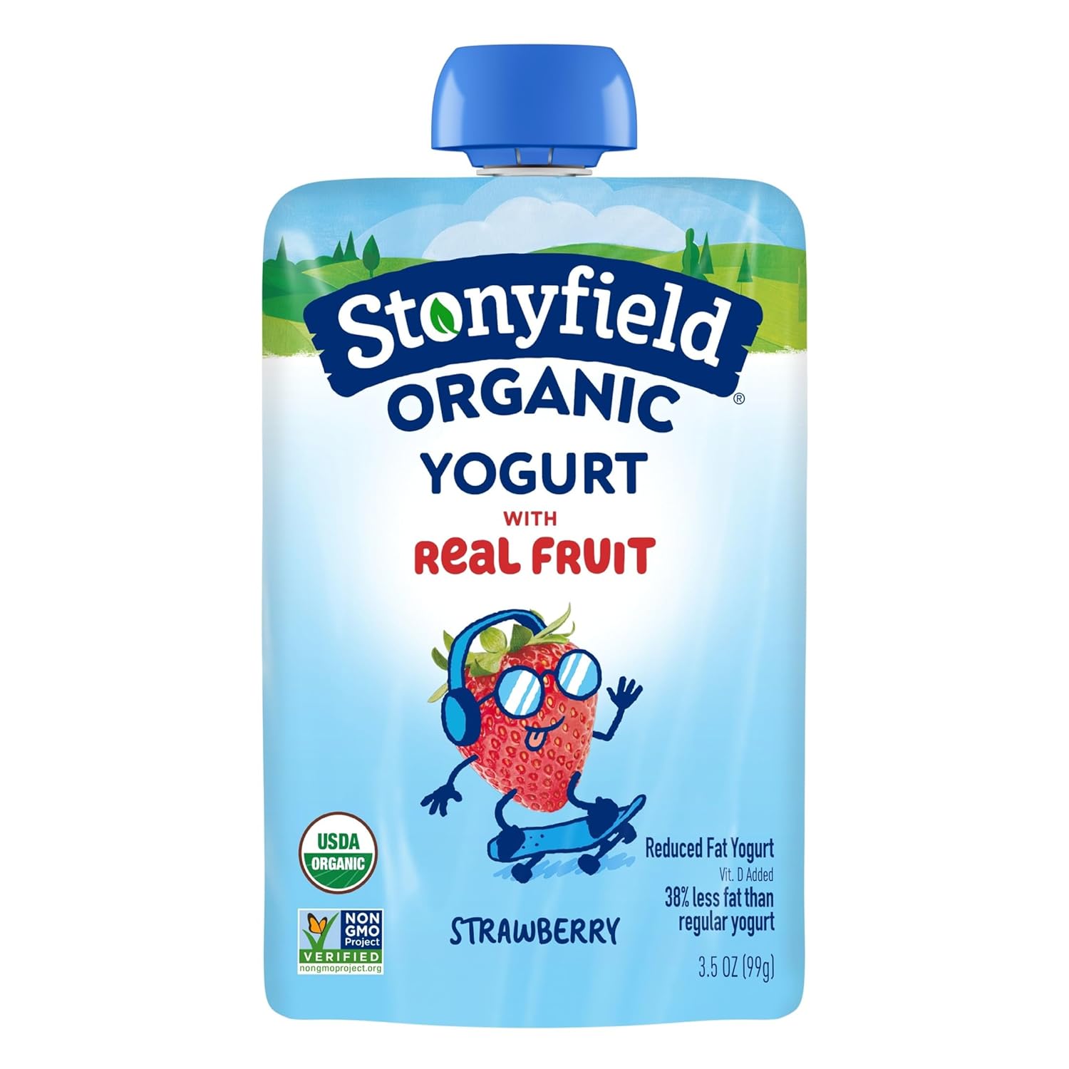 • Stonyfield Organic Kids Strawberry Lowfat Yogurt Pouch, 3.5 oz, Single Serve – Includes Live Active Cultures