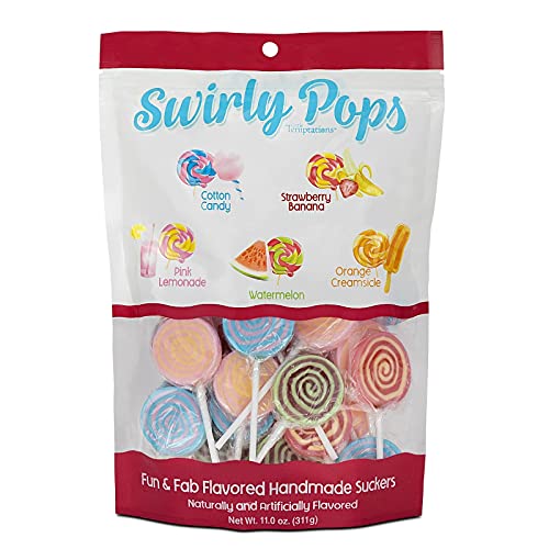 • Candy Shop Handmade Assorted Flavored Swirl Lollipops, 11 Oz bag, 30 Pieces, Fun Assortment of Uniquely Flavored Suckers