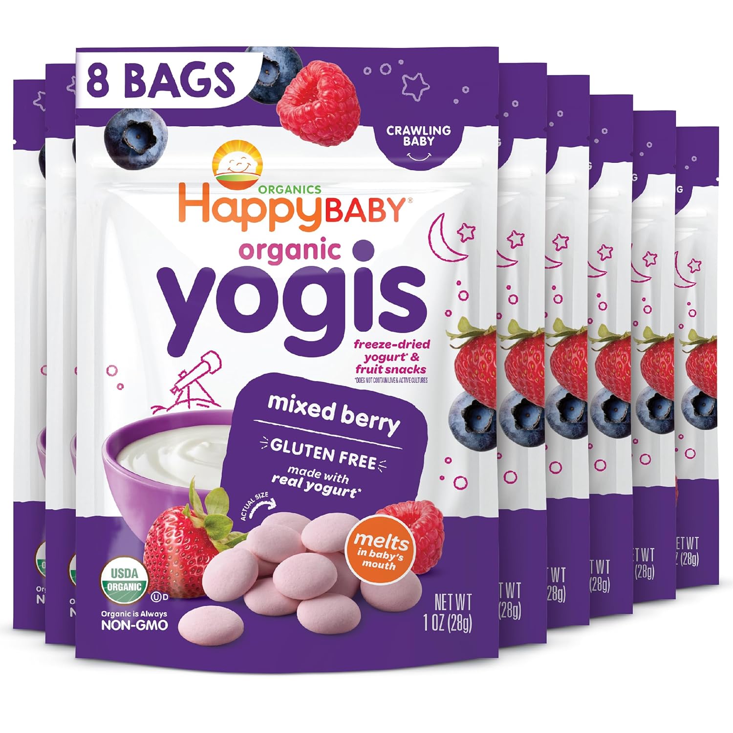 • Happy Tot Organics Yogis Freeze-Dried Yogurt & Fruit Snacks, Mixed Berry, 1 Ounce (Pack of 8) packaging may vary