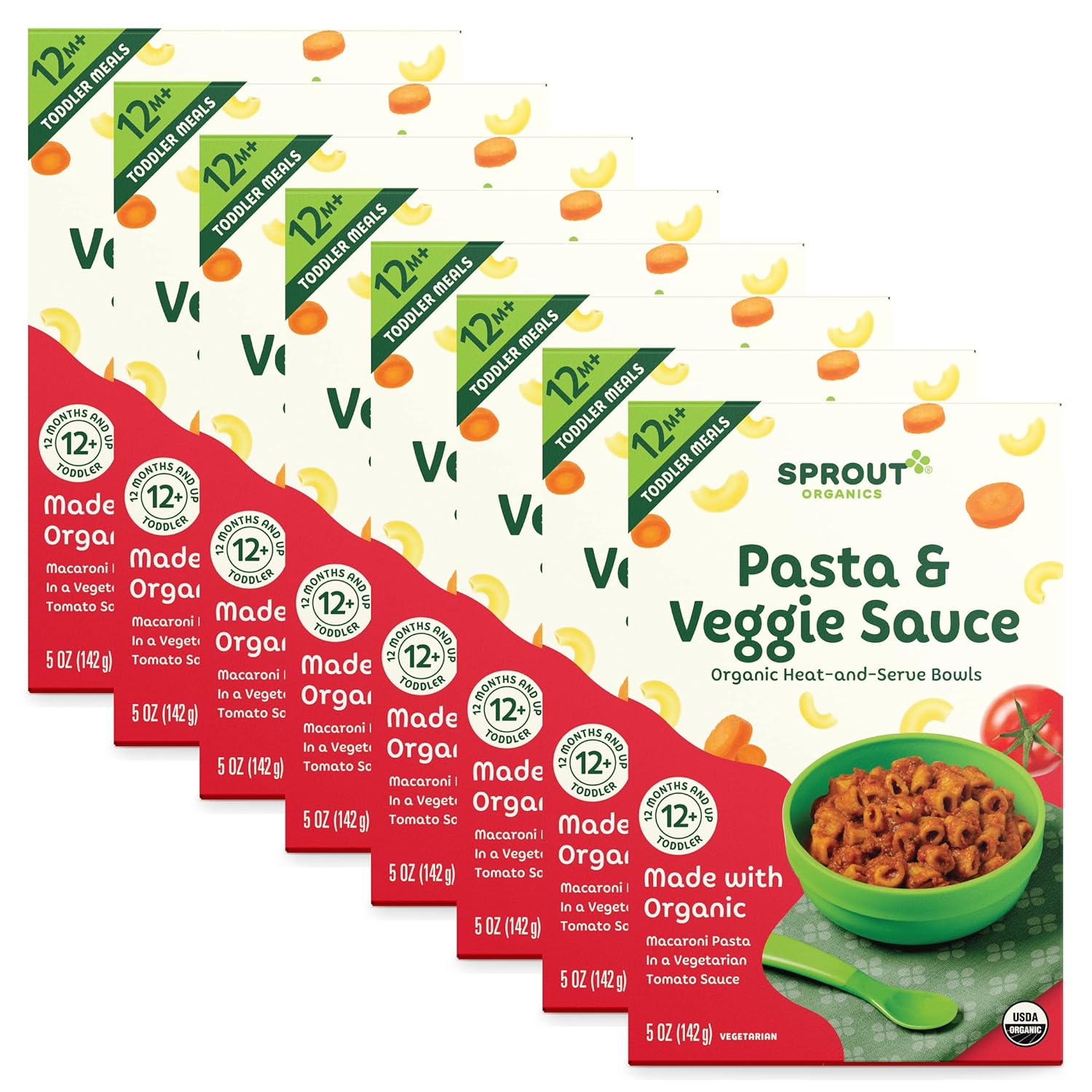 • Sprout Organic Baby Food, Toddler Meals, Macaroni Pasta with Vegetarian Tomato Sauce, 5 Oz Bowl (8 Count)