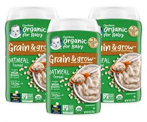 • Gerber Organic for Baby 1st Foods Grain & Grow Cereal, Oatmeal Cereal, Made with Whole Grains & Iron, USDA Organic & Non-GMO, 8-Ounce Canister (Pack of 3)
