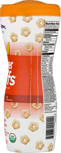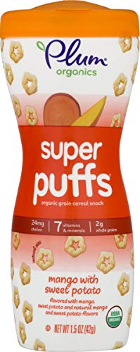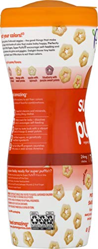 Super puffs, a colorful line of bite-sized, nutritious puffed snacks, are made with whole grains and Organic veggies and fruit. With 7 essential vitamins and minerals, super puffs delight tiny taste buds with a rainbow of nutritional goodness. Perfectly sized for little fingers, this snack encourages self- feeding and easily dissolves into grins and giggles.