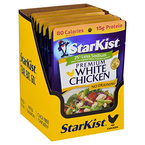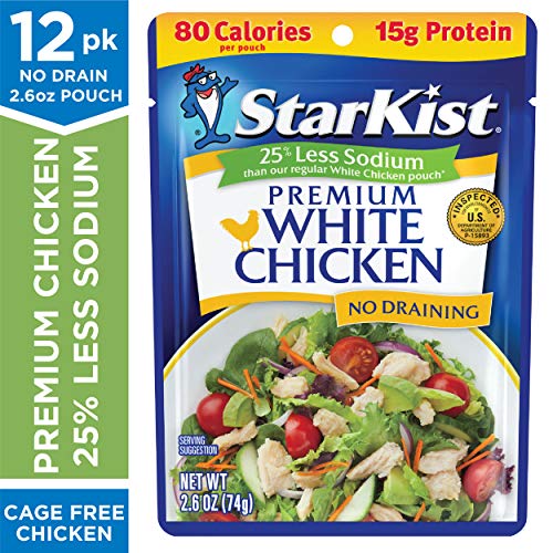 StarKist 25% Less Sodium Premium White Chicken pouch is a delicious choice when you’re watching your sodium intake with 270mg of sodium per pouch (compared to 360mg in our Regular White Chicken). Featuring fully cooked, tender chicken, it’s ready to enjoy in all of your favorite recipes. Packed in a convenient flavor fresh pouch, it’s the first pouch of chicken that truly doesn’t require any draining. It’s great for incorporating into your favorite recipes or enjoy it straight out of the pouch. It’s cooked chicken that makes a quick and delicious chicken salad, buffalo chicken, chicken quesadillas and also makes meal prep a breeze. Plus, there’s no can opener needed – Just tear, eat and go! Each StarKist chicken pouch has 15 grams of protein and 80 calories per serving. It’s gluten free, soy free, and works well with Keto, Paleo, Mediterranean, DASH, and Weight Watchers diet plans. An industry innovator, StarKist was the first brand to introduce StarKist single-serve pouch products, which include Tuna, Salmon and Chicken Creations, and StarKist Selects E.V.O.O. As America’s favorite tuna*, StarKist represents a tradition of quality, consumer trust and a commitment to sustainability *Nielsen Custom Scantrak Data xAOC Dollar Share Latest 52 Weeks