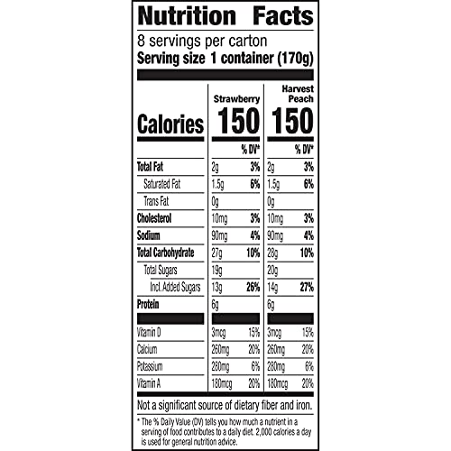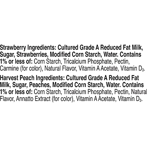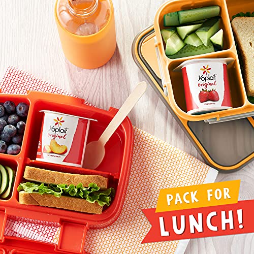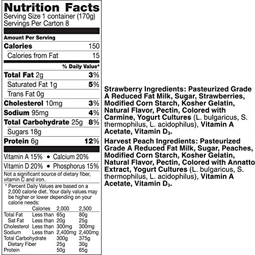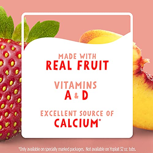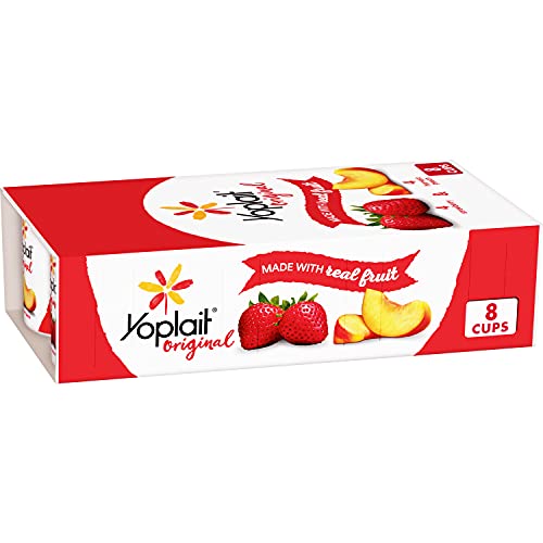 Yoplait Original Strawberry and Harvest Peach Yogurt Cups help you stop and enjoy the moment with each smooth and delicious bite. Delight in your choice of two classic flavors made with real fruit: the perfectly sweet strawberry or harvest peach yogurt. Pack these gluten-free yogurt cups in your lunchbox or take one on the road for an on-the-go snack. Peach or strawberry yogurt tastes great on its own, paired with crunchy granola or blended into a refreshing smoothie.